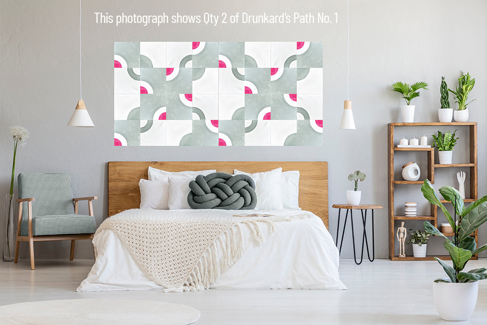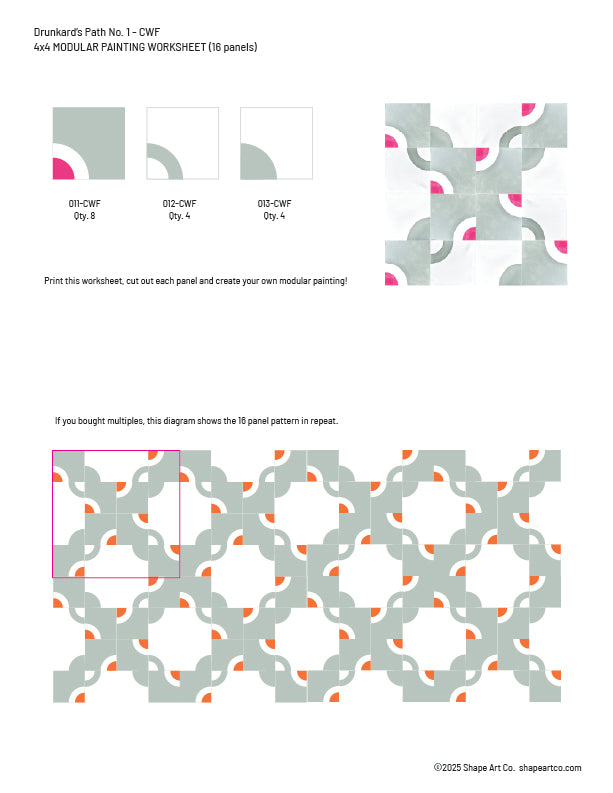 This modular acrylic wall art system features 16 individual, hand-painted panels inspired by antique quilt designs. The panels work together to form a Drunkard's Path motif while also offering flexibility in layout and installation. Panels can be easily repositioned and reconfigured over time, allowing you to refresh your layout whenever inspiration strikes—depending on your chosen hanging method.