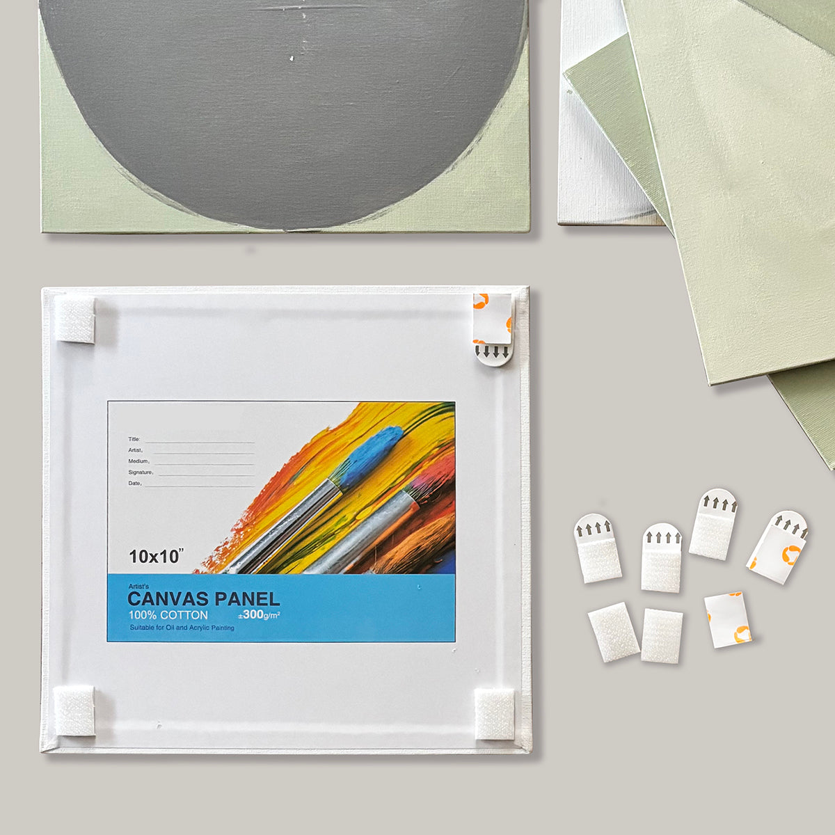 Panels are canvas-wrapped on board, offering a durable yet lightweight structure for easy installation. -